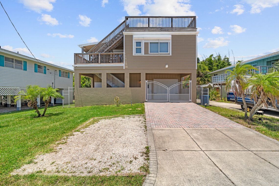 Spacious 3BR, 2BA beach home just a short walk from the sand! Three bedrooms up, private queen room and bath down. Secure 2-car garage for vehicles or a small boat. Perfect for families or groups. 30-day minimum stay required.