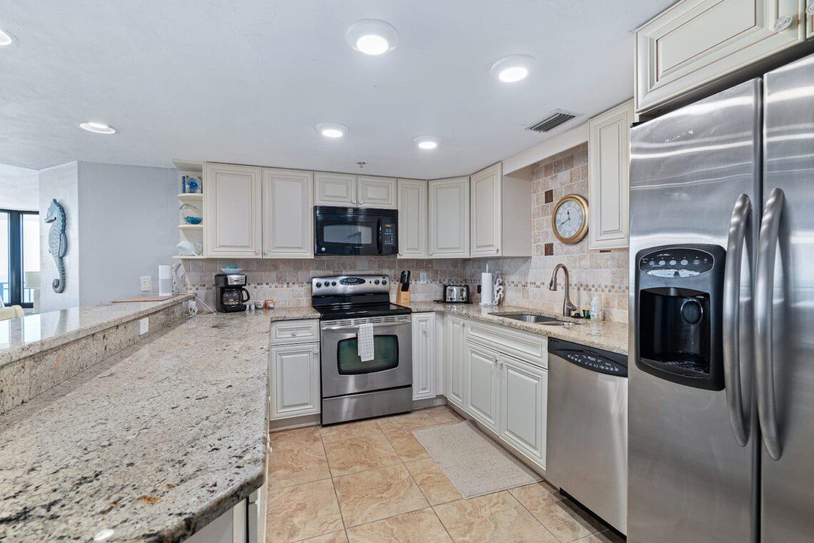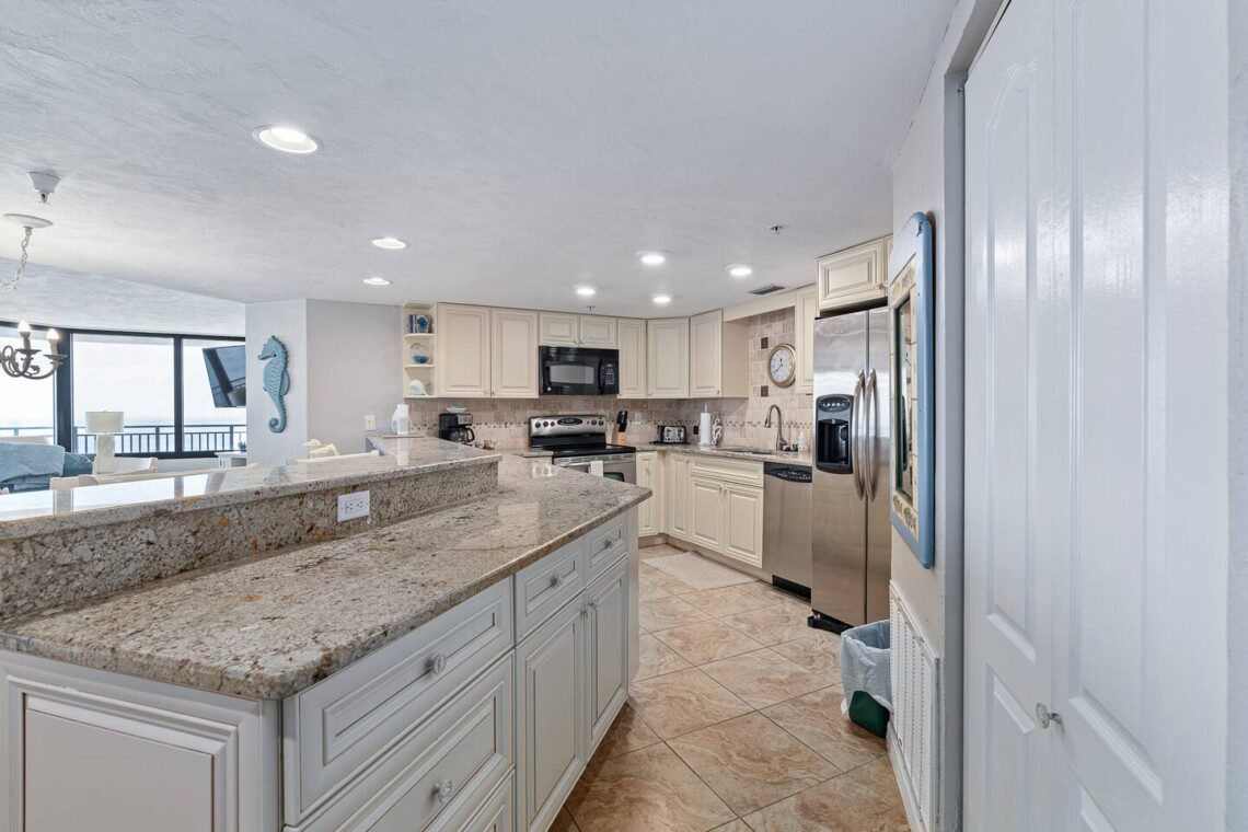This spacious, updated condo offers an open kitchen, large glass doors leading to a private balcony, and plenty of storage with walk-in closets. Perfect for a two-week vacation or longer, it’s a true home away from home. Experience beachfront living at its finest!