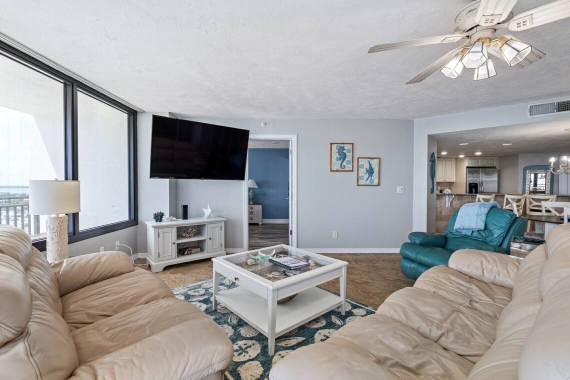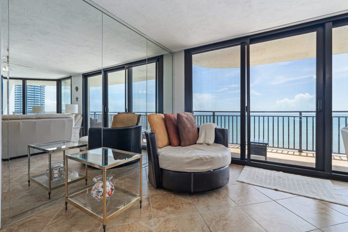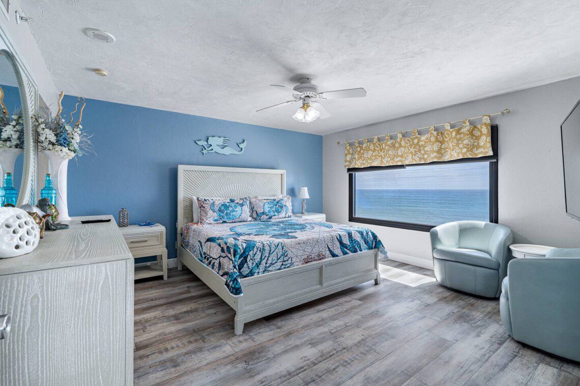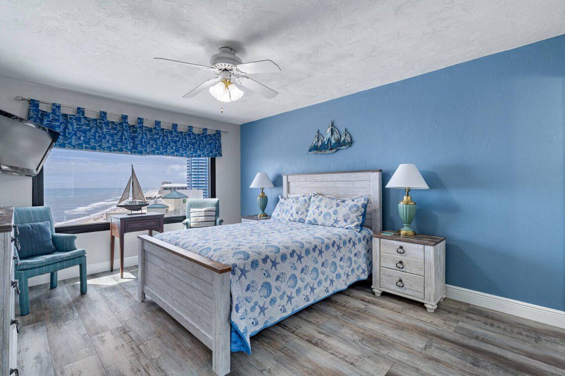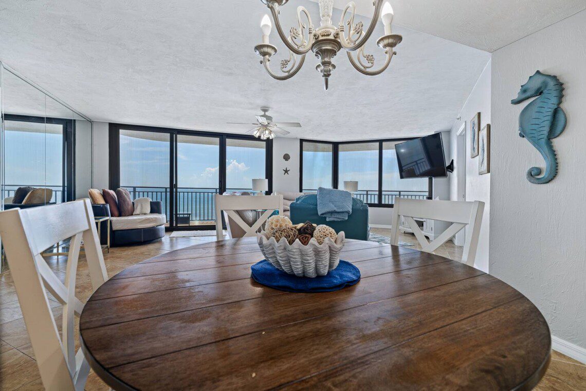 Stay in this updated 3BR/3BA ocean-view condo on the 14th floor in Daytona Beach Shores. Enjoy panoramic ocean views, direct beach access, a heated pool, spa, saunas, library, and nearby restaurants, shops, and Daytona International Speedway.